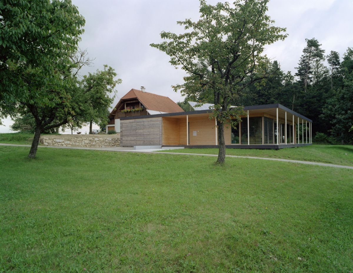 Das Singlewohnhaus steht in der kleinen Mühlviertler Gemeinde Neumarkt im Mühlkreis im nördlichen Oberösterreich. Der auf erschlossenem Terrain weit außerhalb des Ortszentrums gelegene Holzriegelbau fügt sich harmonisch in die umgebende Hügellandschaft ein und belässt den beiden Nachbargebäuden ihren Ausblick.