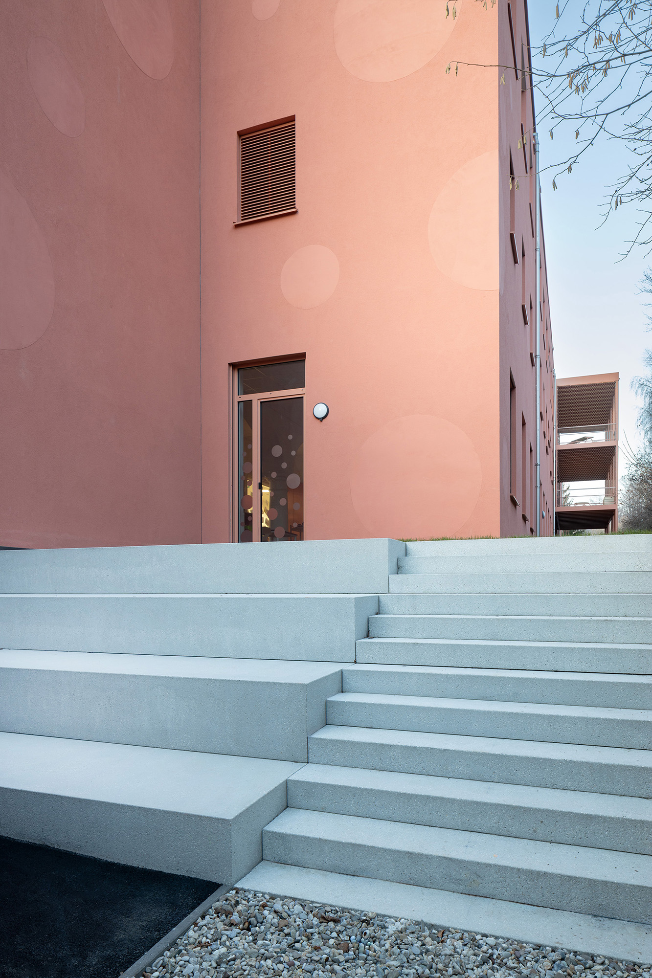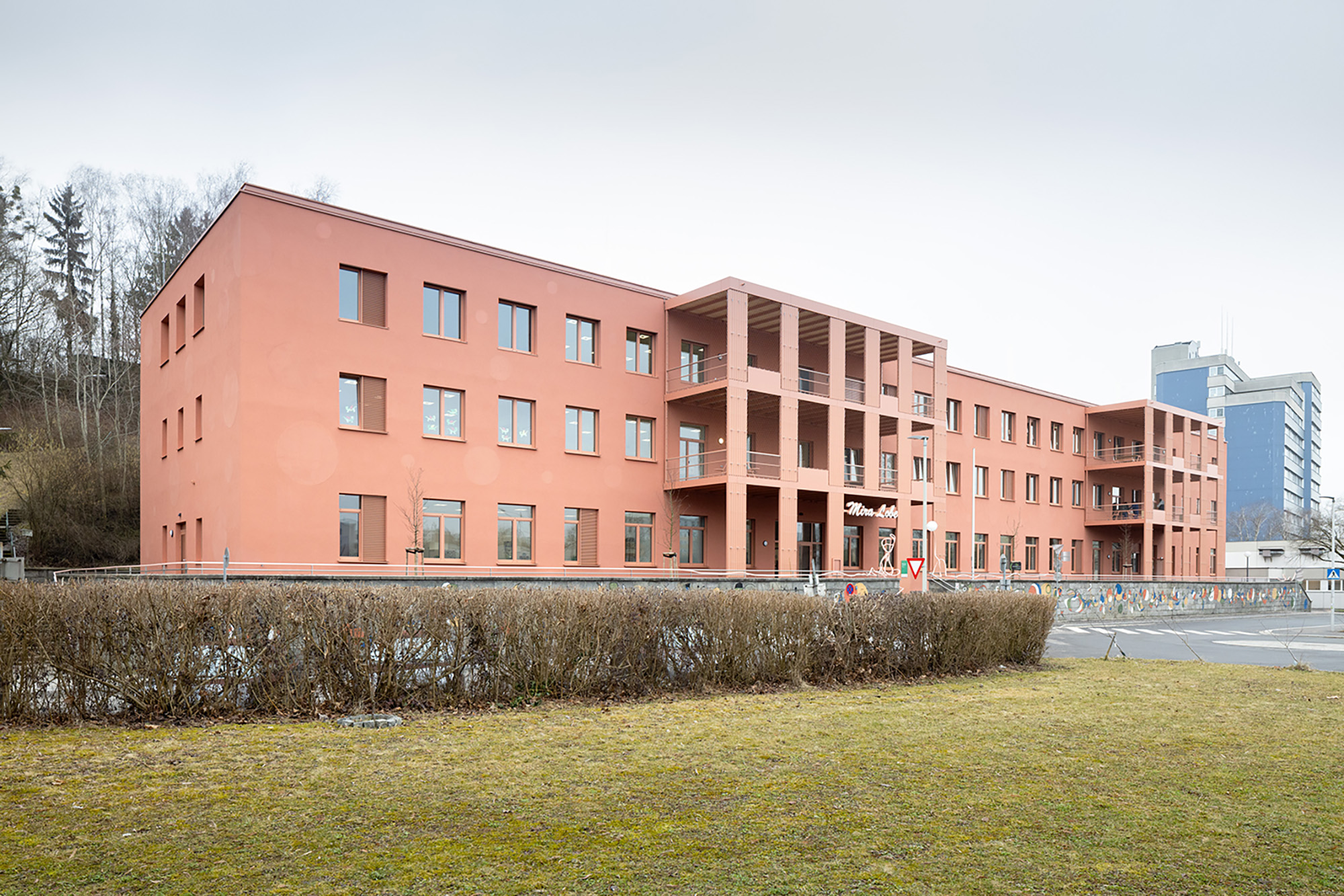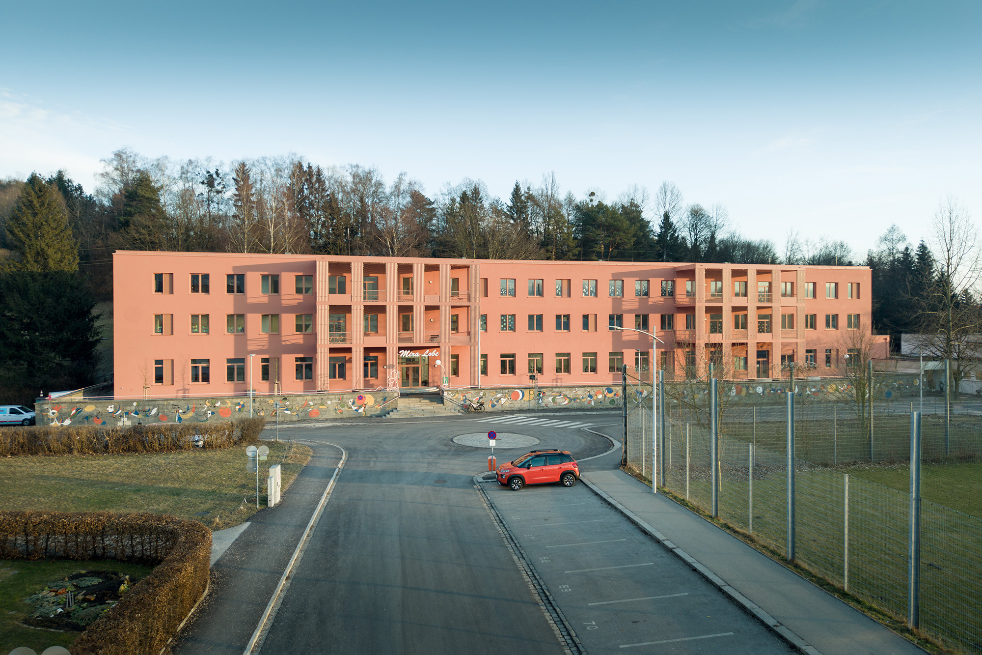 Am Endpunkt des Aubrunnerwegs, an der Schnittstelle zwischen Wohngebiet, Schulareal und einem städtischen Waldstück, befindet sich die neu gestaltete Mira-Lobe-Schule im Linzer Stadtteil Dornach-Auhof. Das Projekt umfasst die Generalsanierung der ehemaligen Aufhofschule, deren Ursprung auf einen Kasernenbau aus der Zeit um 1940 zurückgeht und der nach dem Zweiten Weltkrieg zu einer Schule adaptiert wurde.