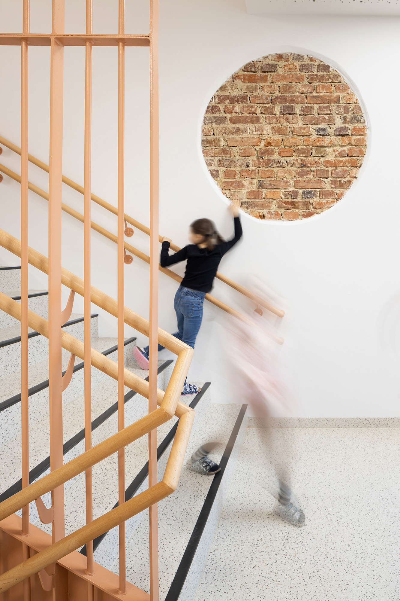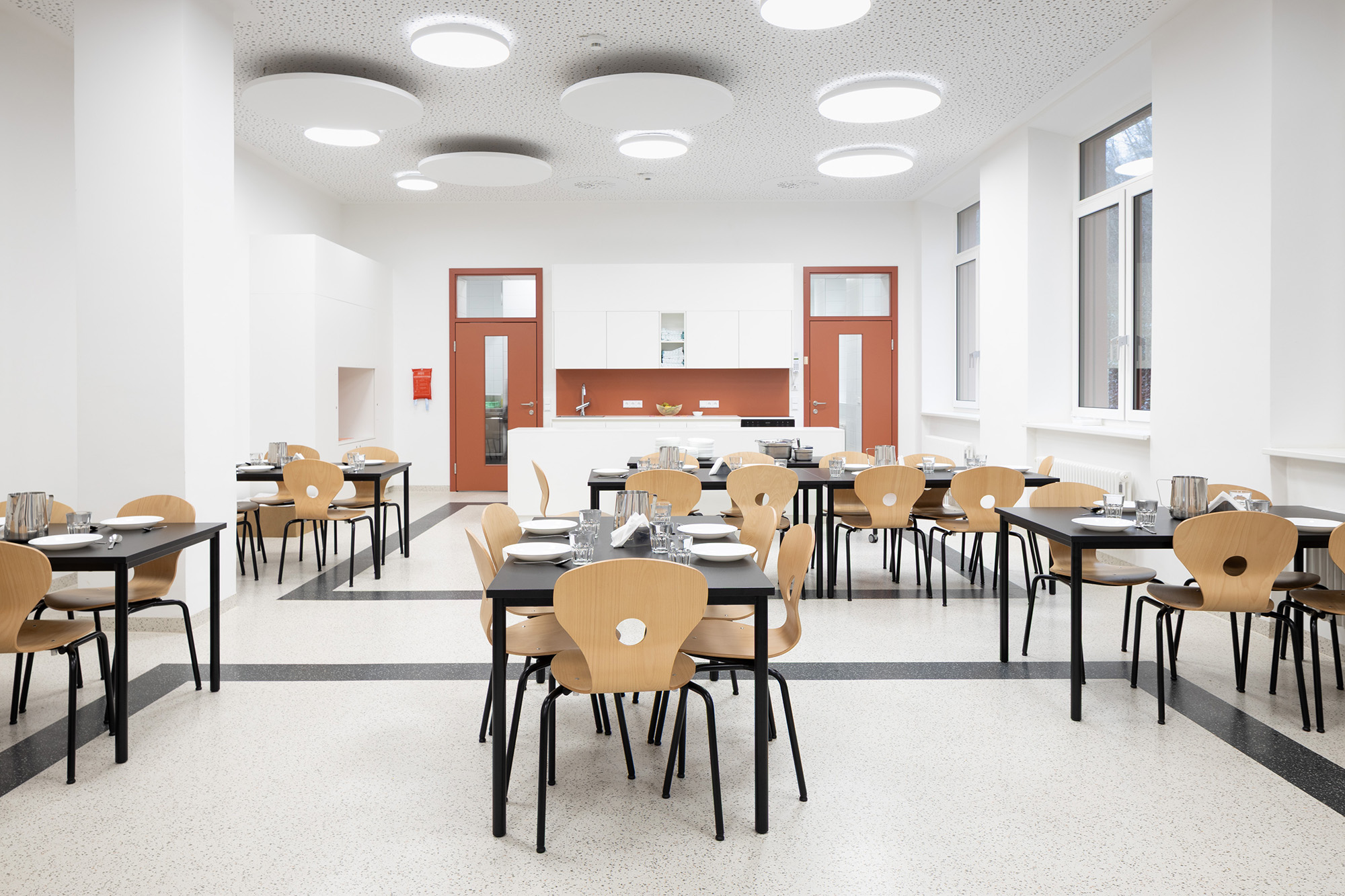 Die klare und robuste Struktur des Bestands ermöglichte eine flexible Neuorganisation der Grundrisse und die räumliche Umsetzung zeitgemäßer pädagogischer Konzepte. Durch die Bündelung der Einrichtungen entsteht ein vielfältiges Raumangebot, das Synergien nutzt und den Anforderungen moderner Bildungsräume gerecht wird.